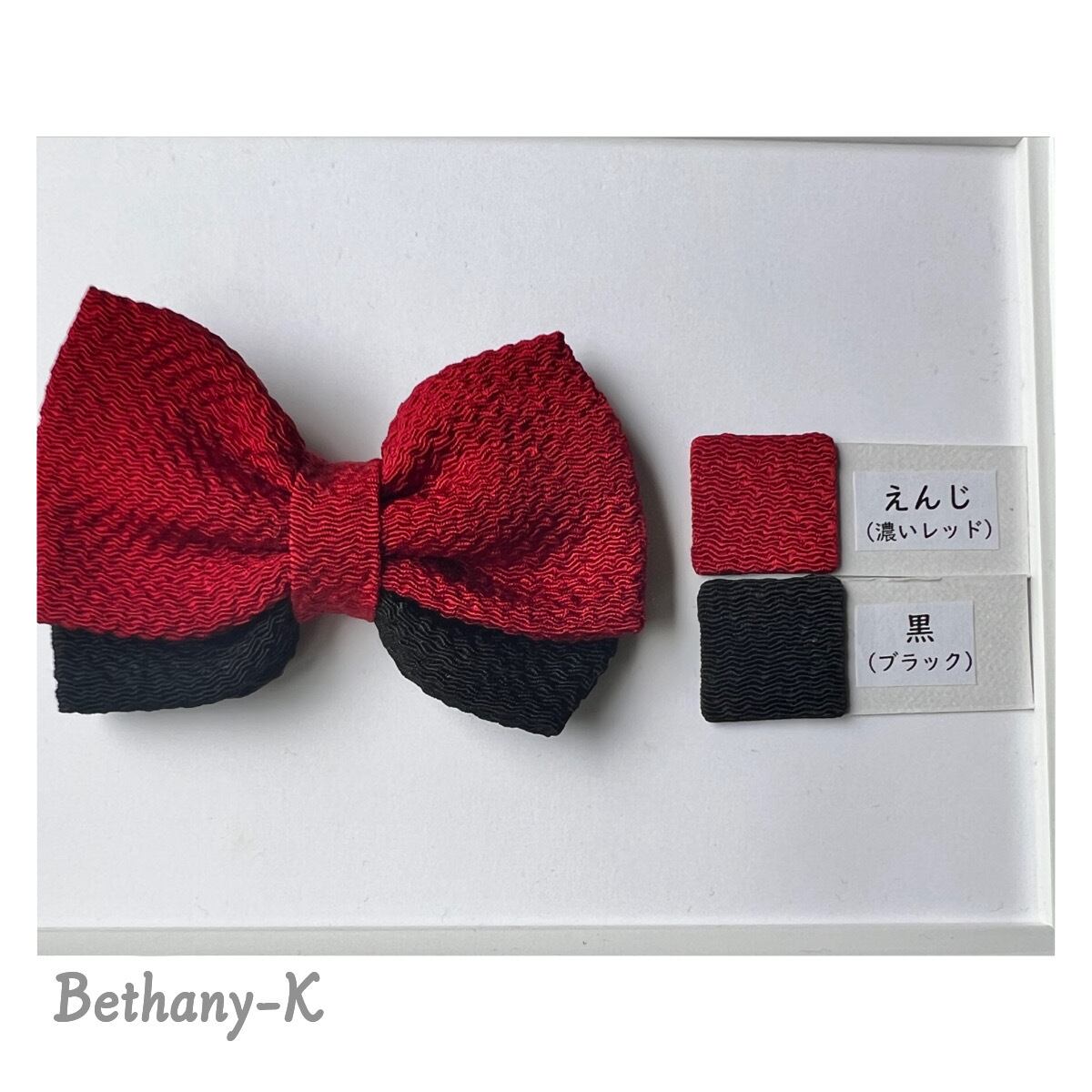 一年中おすすめ◆6cm×8cmのベビーからずっと使える和風リボンの髪飾り◆えんじ×黒色のちりめんリボン