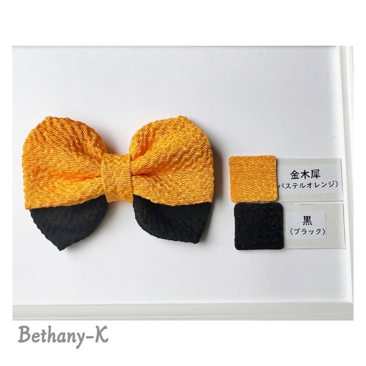 一年中おすすめ◆6cm×8cmのベビーからずっと使える和風リボンの髪飾り◆金木犀×黒色のちりめんリボン