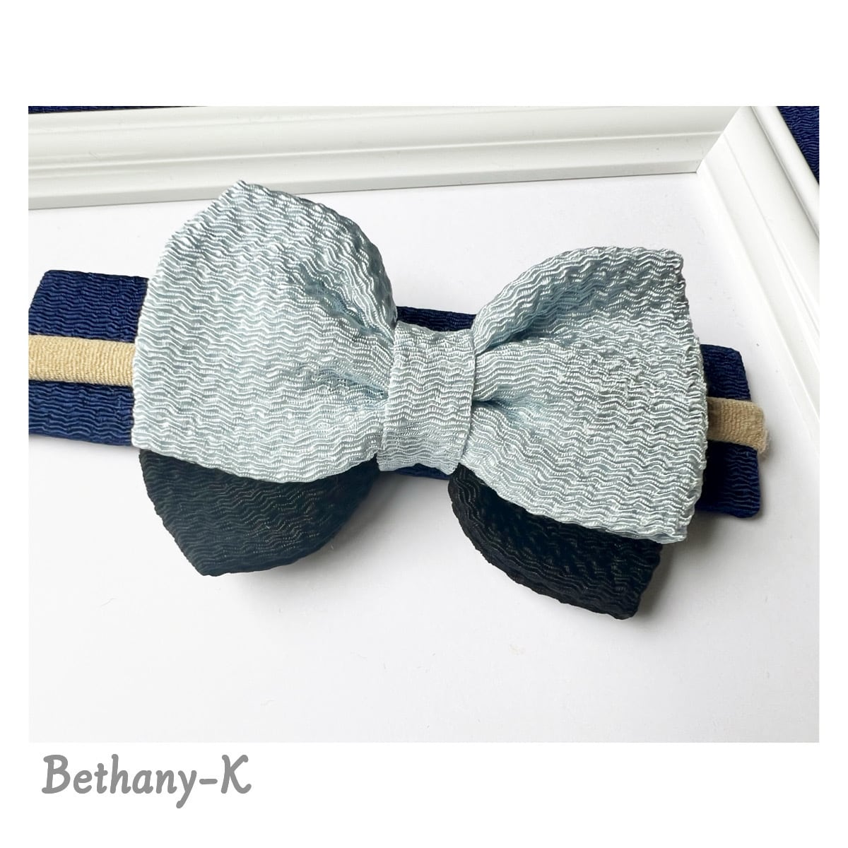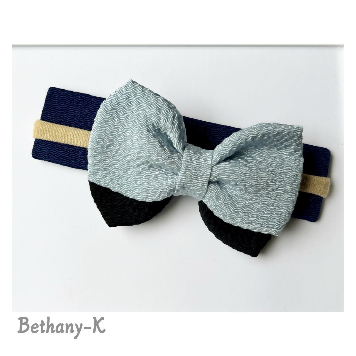 一年中おすすめ◆6cm×8cmのベビーからずっと使える和風リボンの髪飾り◆水色×黒色のちりめんリボン