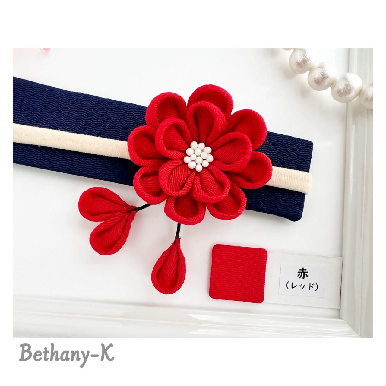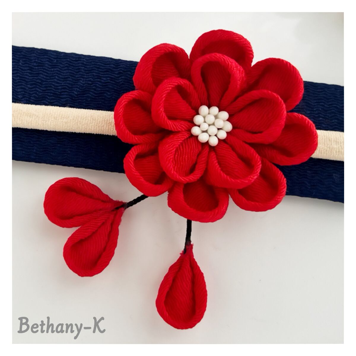 初節句・お食い初めに人気!≪4.5cmカメリアの髪飾り(下がり付き) ≫赤色のママでも簡単につけられるつまみ細工_BETHANY- KベサニK製作所 | 【Bethany-K(ベサニK)製作所】 つまみ細工&ちりめんリボン