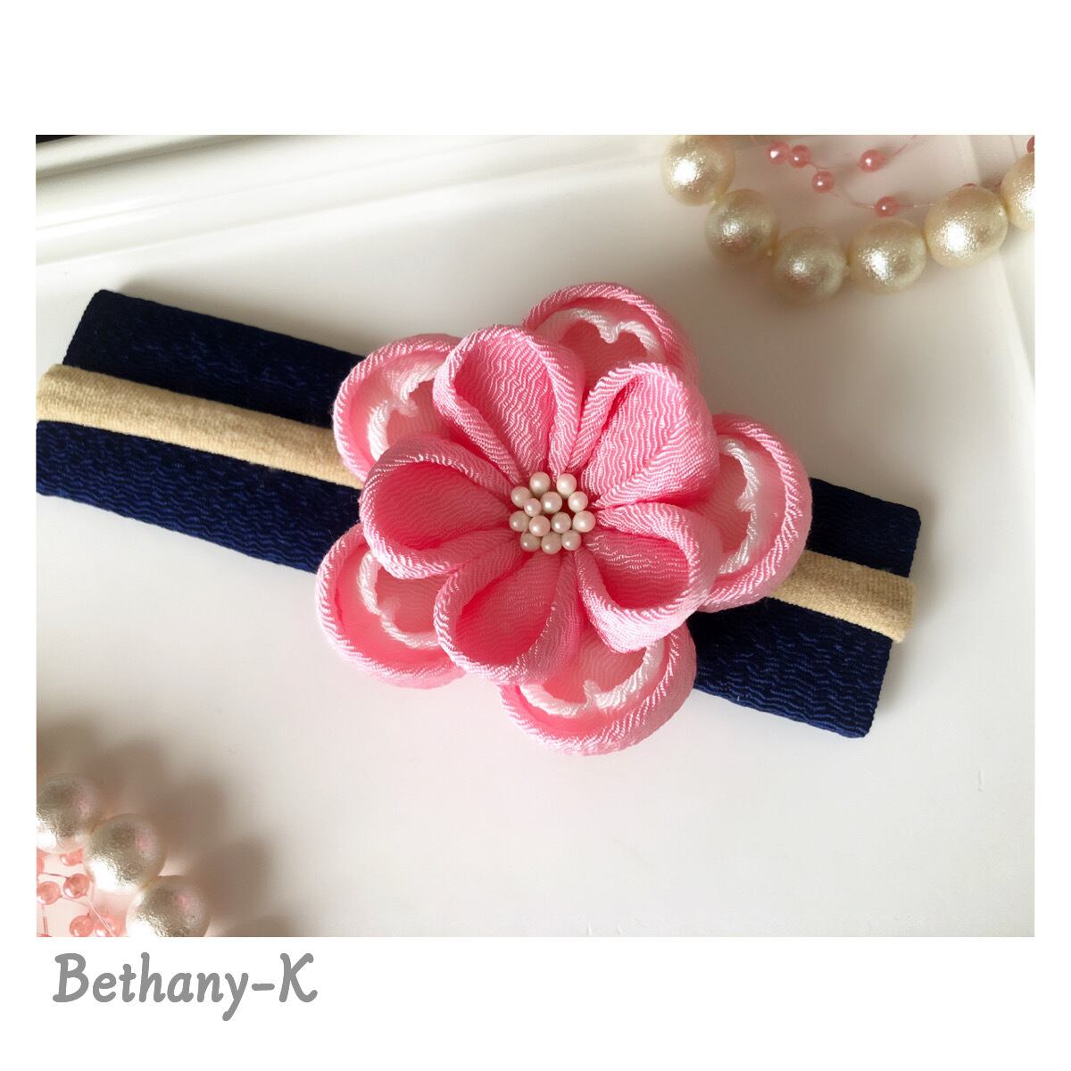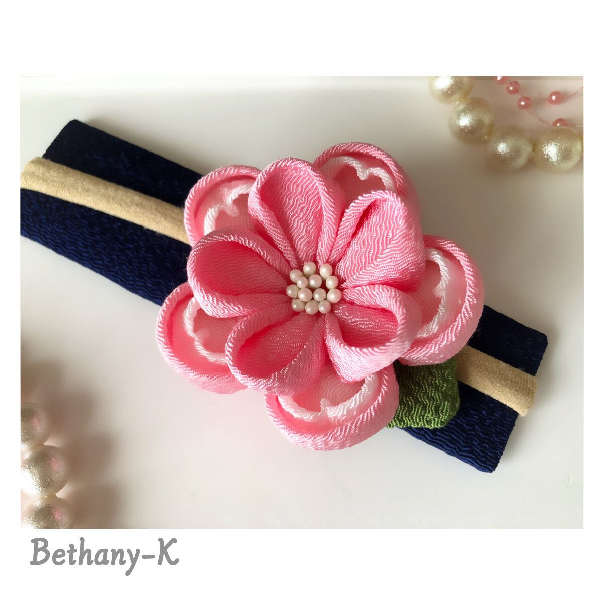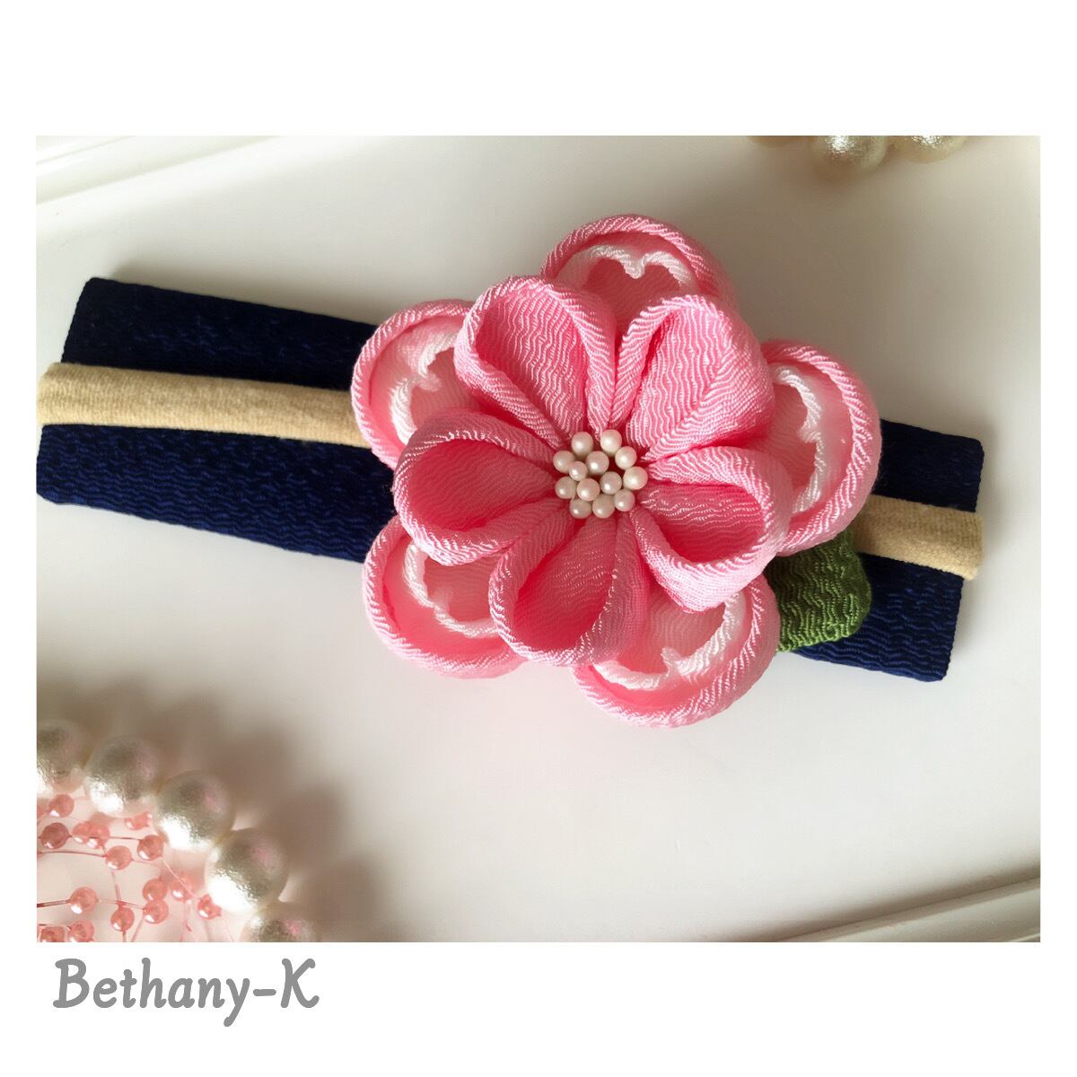 七五三やひな祭りに◆5.5cmキュートな重ね梅(下がり無し)◆桃×白色のママでも簡単につけられるつまみ細工_BETHANY-K ベサニK製作所 | 【Bethany-K(ベサニK)製作所】 つまみ細工&ちりめんリボン