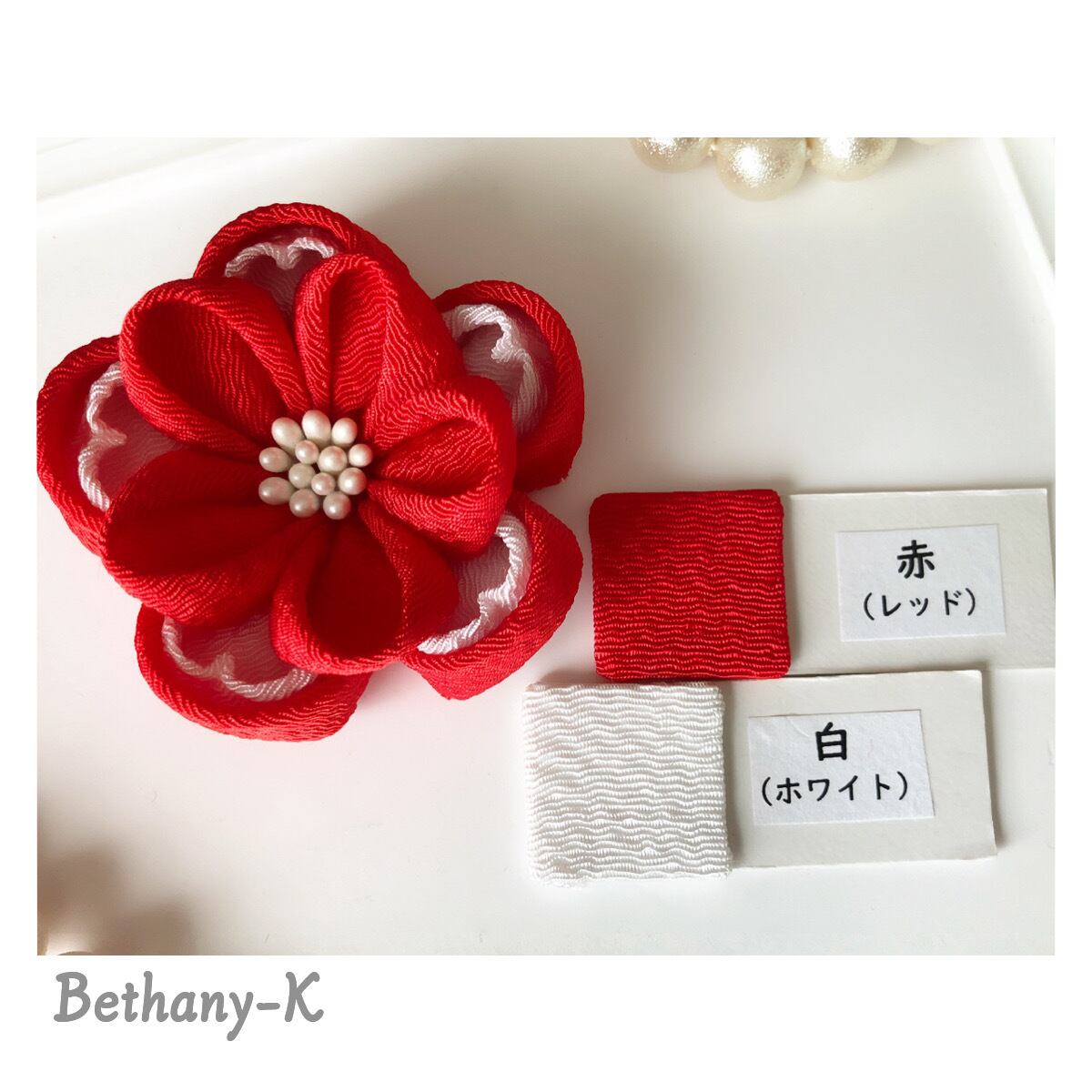 七五三やひな祭りに◆5.5cmキュートな重ね梅(下がり無し)◆赤×白色のママでも簡単につけられるつまみ細工_BETHANY-K ベサニK製作所 | 【Bethany-K(ベサニK)製作所】 つまみ細工&ちりめんリボン