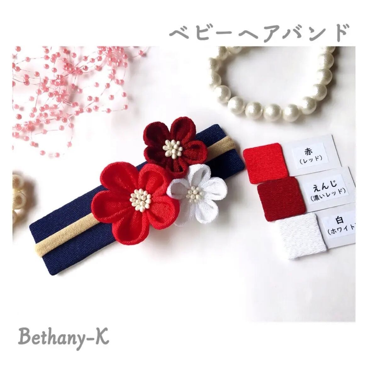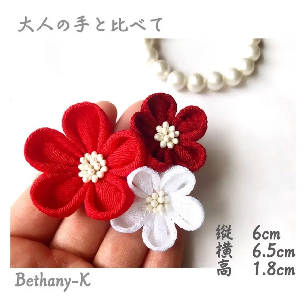 お食い初めや初節句に◆小花が可愛い和モダン髪飾り(下がり無し)◆えんじ×赤×白色のママでも簡単につけられるつまみ細工_BETHANY-K ベサニK製作所 | 【Bethany-K(ベサニK)製作所】 つまみ細工&ちりめんリボン